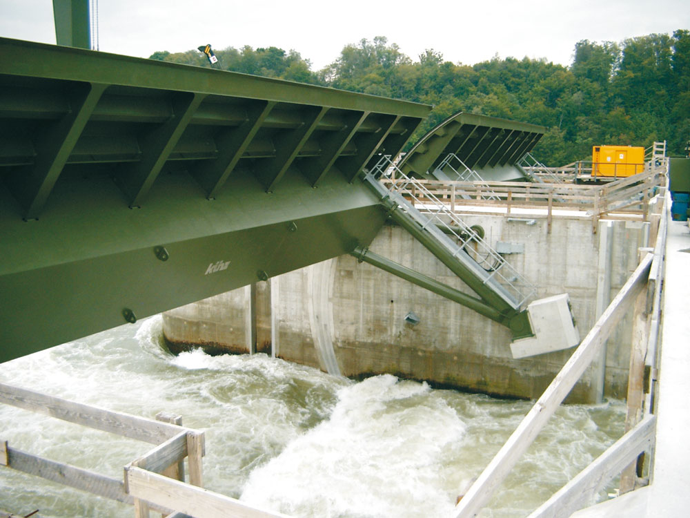 For water level control as well as for flood protection in modern dams hydraulic drive systems with hydraulic cylinders are mainly used for gate movement and positioning. Due to the different cinematic of the used radial gates, rotary gates, slide gates and flap gates the hydraulic cylinders have to be engineered according to the respective case. This can be done according to the usual DIN and ASME standards but also regional standards as well as special customer requests can be considered. The necessary functions for load holding, synchronisation and safety will be realized with manifold blocks which are mainly direct flanged to the hydraulic cylinders. Through the optional possible engineering and production of hydraulic manifold blocks as well as of the associated power packs we can offer our costumers complete systems solutions for civil engineering. An actual reference list, representing our decades of experience from more than 100 projects, is available on request.